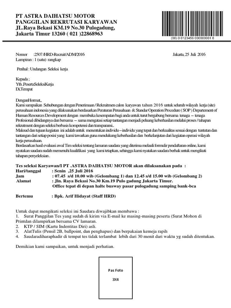 Astra daihatsu motor bekerjasama dengan smk pgri 1 ngawi mengundang anda, anak bangsa yang terpilih untuk mengikuti psikotes di smk pgri 1 ngawi, yang bisa anda lihat dibawah. Astra daihatsu motor ini salah satu tujuan utama para lulusan smk dalam jurusan otomotif. Tahapan tes itu mulai dari tes psikotes, interview dan tes medichal, selain itu saya memiliki beberapa postingan untuk mempelajari lebih dalam tahapan tes. Post a comment oke pada postingan kali ini saya akan membagikan info mengenai apa saja tahapan tes pt astra daihatsu motor. Gan ane kebetulan ada panggilan minggu depan untuk tes awal di jakarta tepatnya di sunter neh di ahm alias astra honda motor.